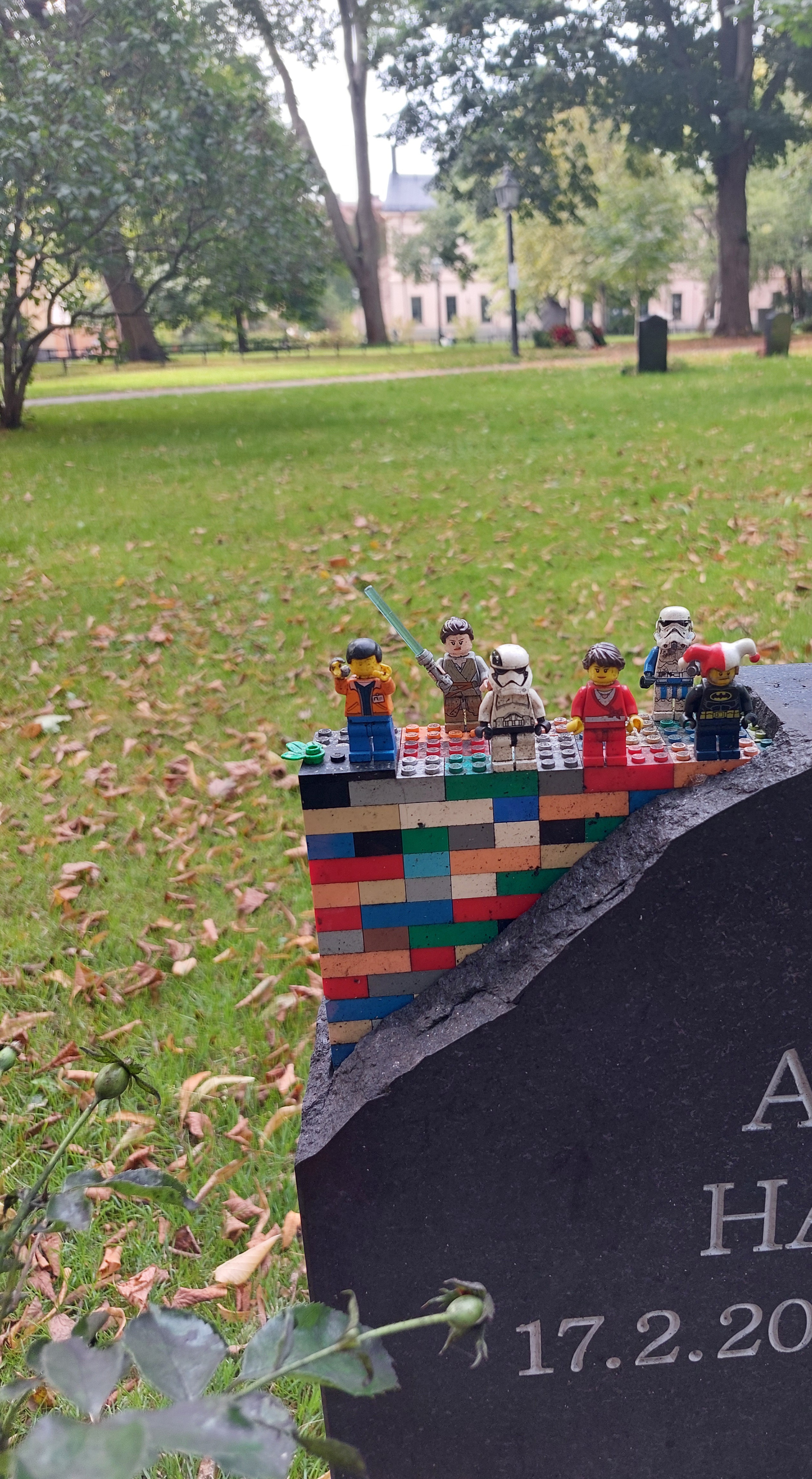 Katariinan kirkkopuiston hautausmaalla erityisesti kosketti hauta, jonka kiveen oli kiinnitetty pienen lapsen vielä eläessä rakentama lego-kuvaelma.